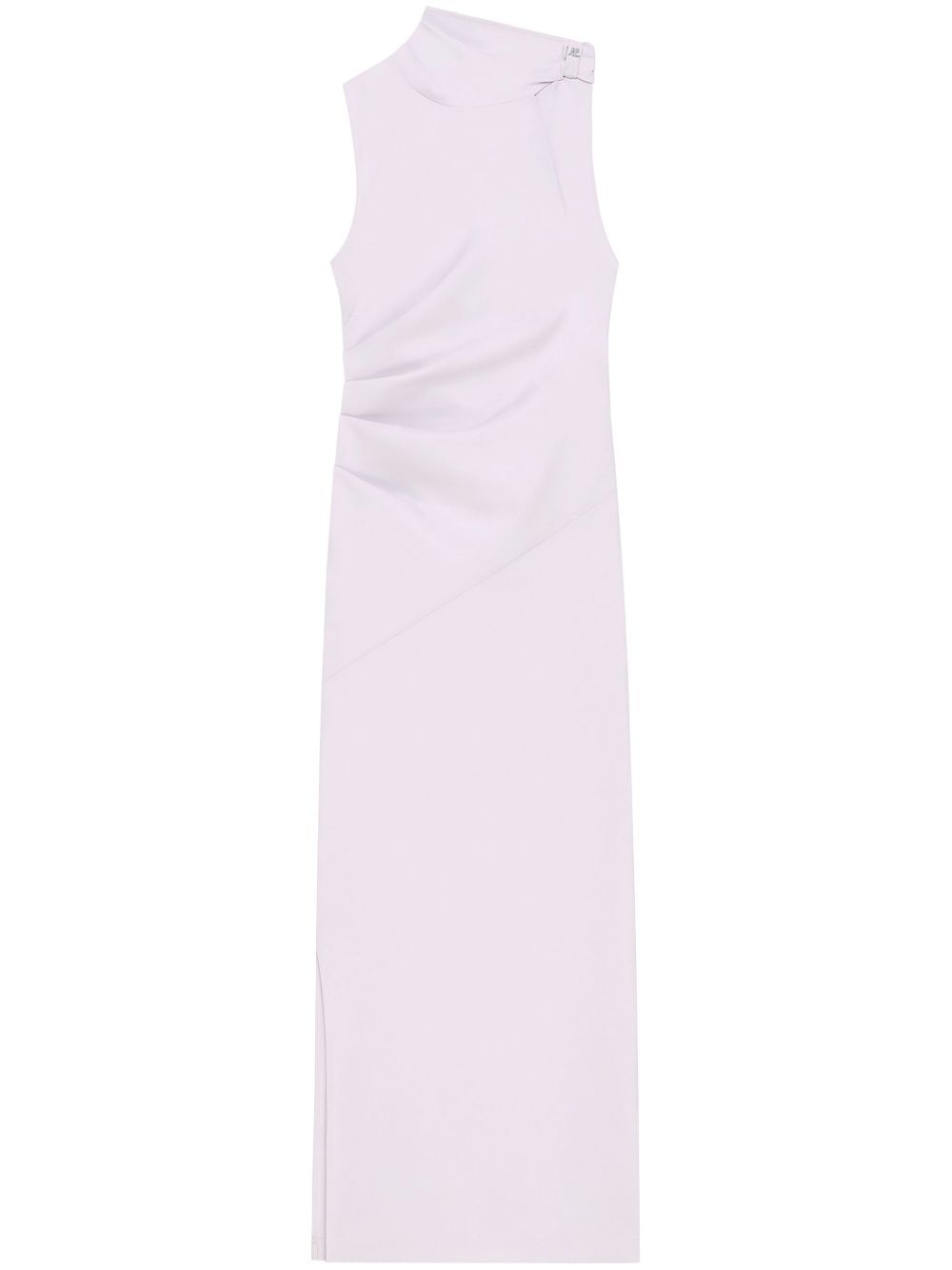 draped maxi dress Highlights - Light pink - Button fastening at the shoulder - Mock neck - Sleeveless - Side slit Made in Italy Composition Polyester 89%, Polyurethane 11%