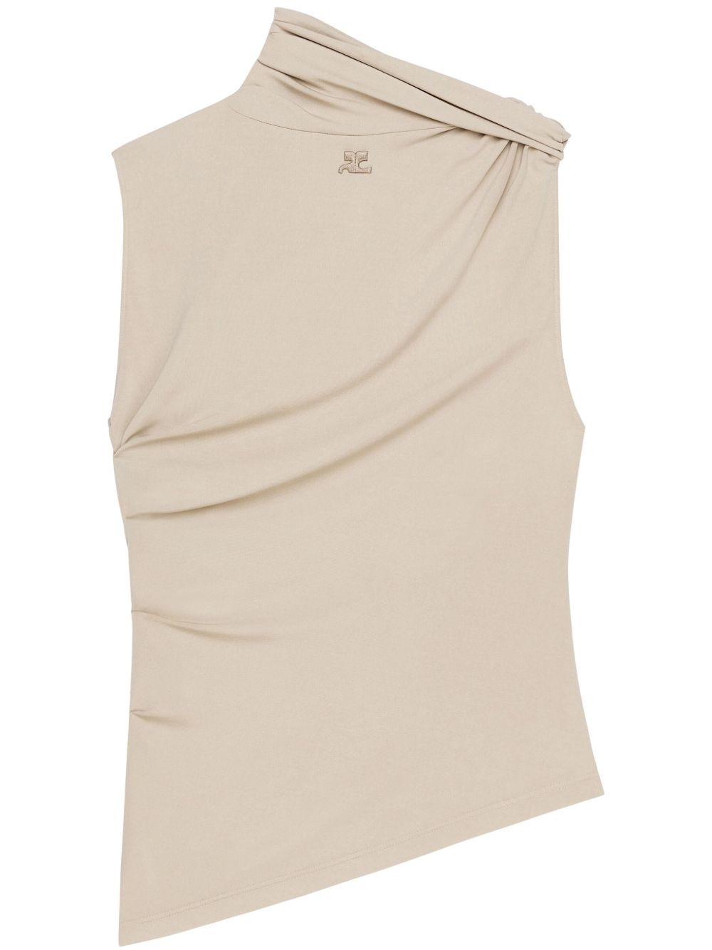 draped top Highlights - Sand beige - Logo patch at the chest - Asymmetric design - Sleeveless Made in Italy Composition Viscose 95%, Elastane 5%