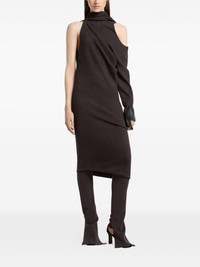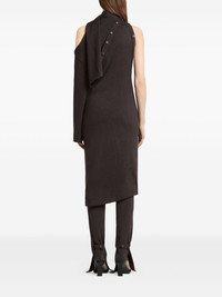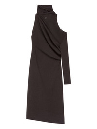 draped wool midi dress Highlights - Brown - Mock neck - One-shoulder design - Asymmetrical hem - Button fastening - Draped detailing Made in Italy Composition Merino 100% Washing instructions Read Manufacturer Guidelines
