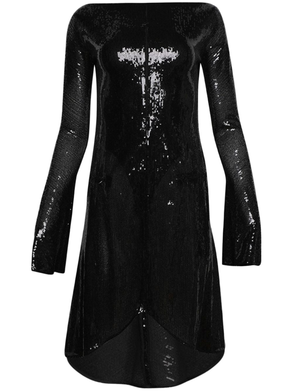 Ellipse glittered dress Highlights - Black - Sequin design - Zip details - Boat neck - Rear zip fastening - Long sleeves - Asymmetric hem - Mid-length Made in Italy Composition Polyester 100% Washing instructions Read Manufacturer Guidelines
