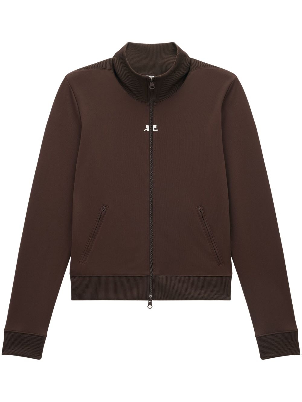 embroidered-logo tracksuit jacket Highlights - Chocolate brown - Embroidered logo to the front - High neck - Front two-way zip fastening - Long sleeves - Ribbed trim - Two side zip-fastening pockets - Straight hem Imported Composition Polyester 100% SIZE & FIT FittingInformation Designed for a relaxed fit, this piece allows for comfort and movement when worn Made from a midweight non-stretch fabric, this piece offers minimal elasticity when worn
