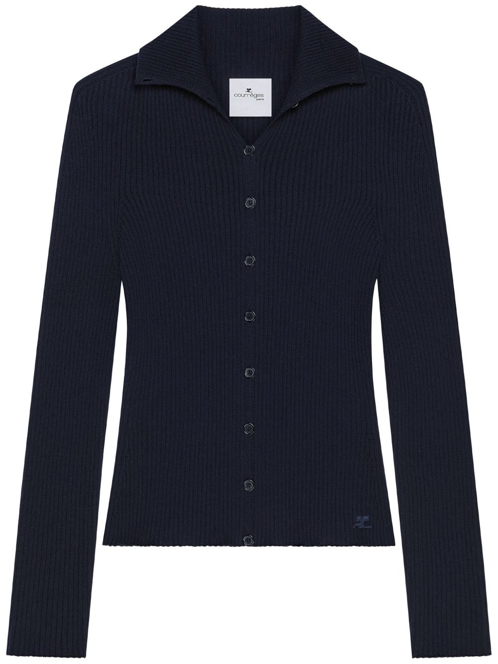fine-ribbed cardigan Highlights - Navy blue - Front button fastening - Applique logo - Spread collar - Long sleeves Made in Italy Composition Cotton 80%, Merino 20%