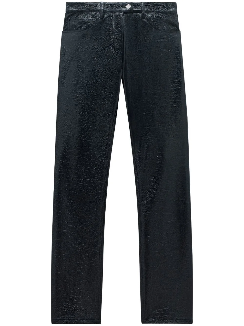 five-pocket vinyl straight trousers Highlights - Black - Cotton blend - High waist - Belt loops - Front button fastening - Straight leg - Classic five pockets Imported Composition Outer: Cotton 88%, Polyurethane 10% Elastane 2%