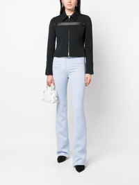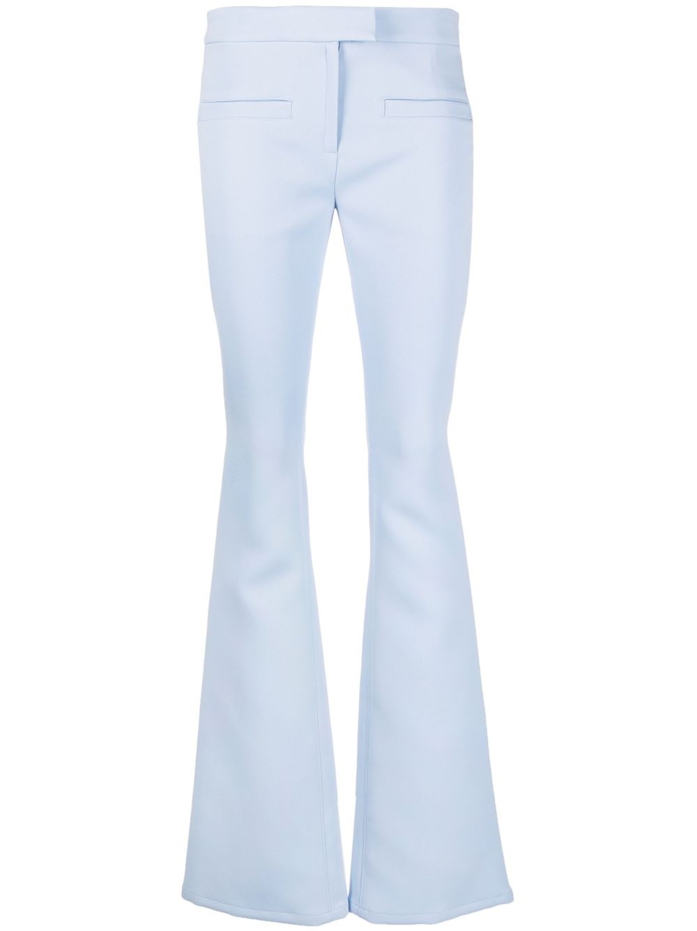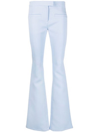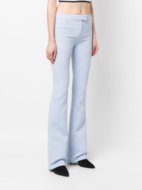 flared trousers Highlights - Light blue - Flared design - Concealed front fastening - Rear welt pocket - Two front welt pockets Imported Composition Outer: Polyester 83%, Acetate 17% Lining: Cupro 100% SIZE & FIT Model measurements Height 5 ft 10 in(1.78 m) Bust/Chest 31.49 in(80 cm) Hips 36.22 in(92 cm) Waist 25.59 in(65 cm) FittingInformation Designed with a bootcut leg, these trousers allow for a close fit at the waist and with an unrestricted, comfortable fit and additional room at the calves Made from a midweight non-stretch fabric This piece fits true to size – take your usual size