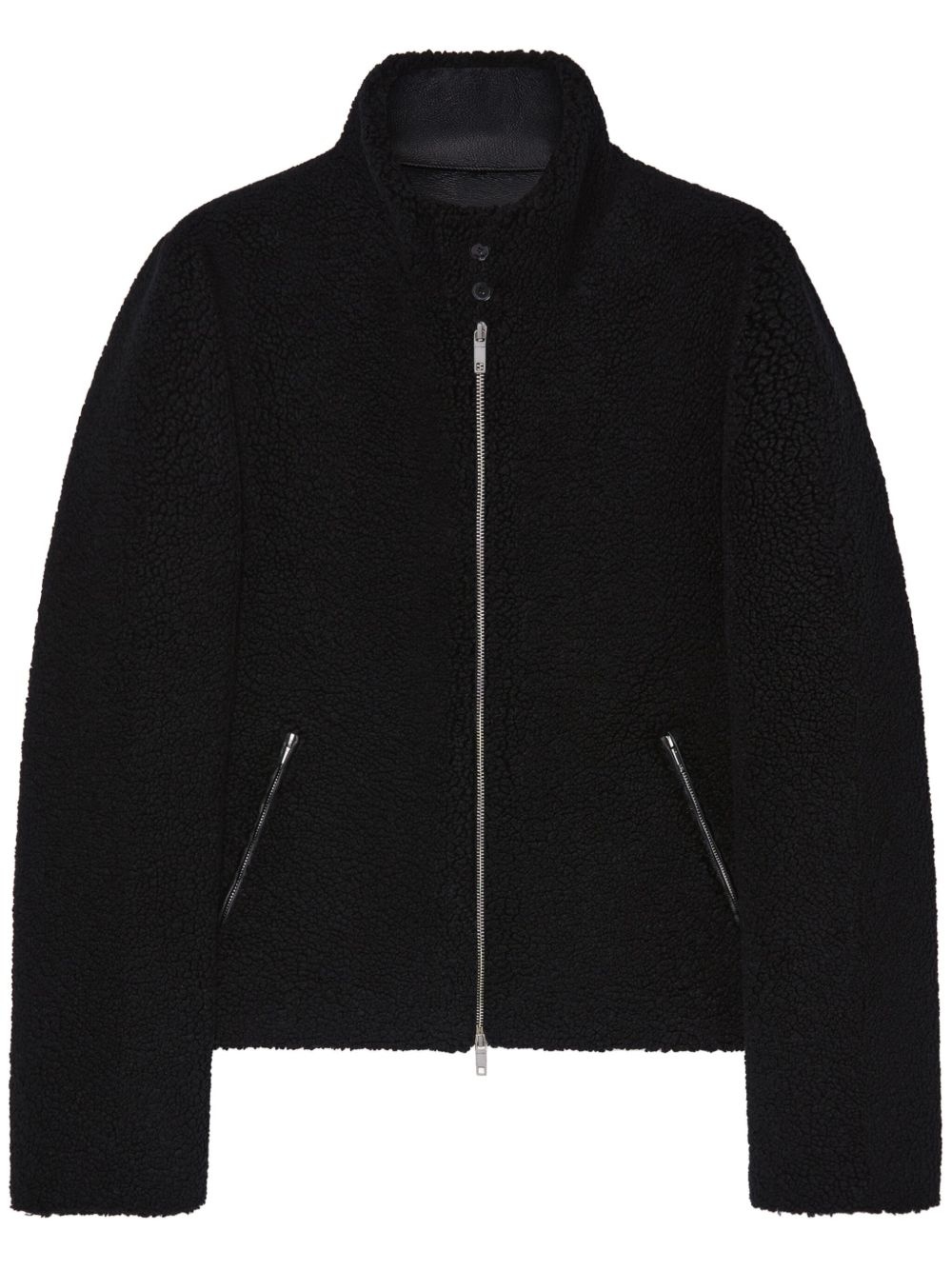 fleece bomber jacket Highlights - Black - Fleece texture - Stand-up collar - Long sleeves - Logo patch at the chest - Two side zip-fastening pockets - Straight hem - Front two-way zip fastening Made in France Composition Polyester 80%, Polyurethane 20%