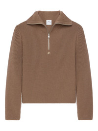 half-zip ribbed-knit sweater Highlights - Brown - Half-zip fastening - Funnel neck - Long sleeves - Ribbed texture Imported Composition Merino 100% Washing instructions Read Manufacturer Guidelines