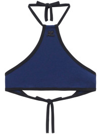 halterneck cropped top navy blue cotton embroidered logo to the front halterneck tie fastening rear tie fastening sleeveless cropped Imported Composition Cotton 100%