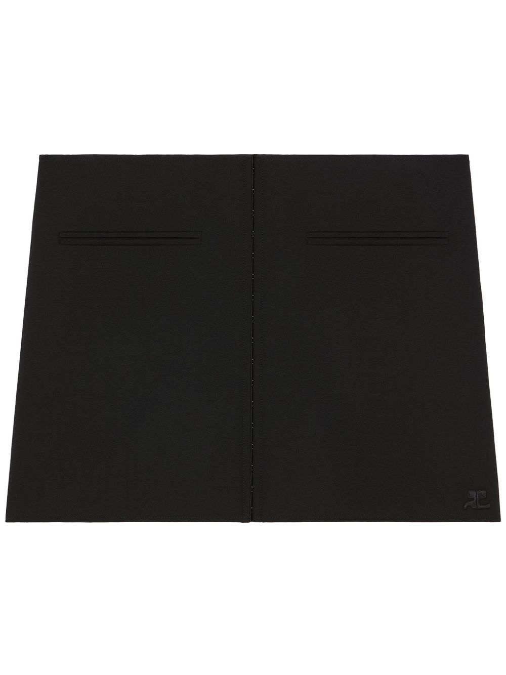 Heritage Clipped mini skirt Highlights - Black - Front hook and eye fastening - Two front welt pockets - Applique logo - A-line Imported Composition Polyester 51%, Wool 41%, Fabric 8%