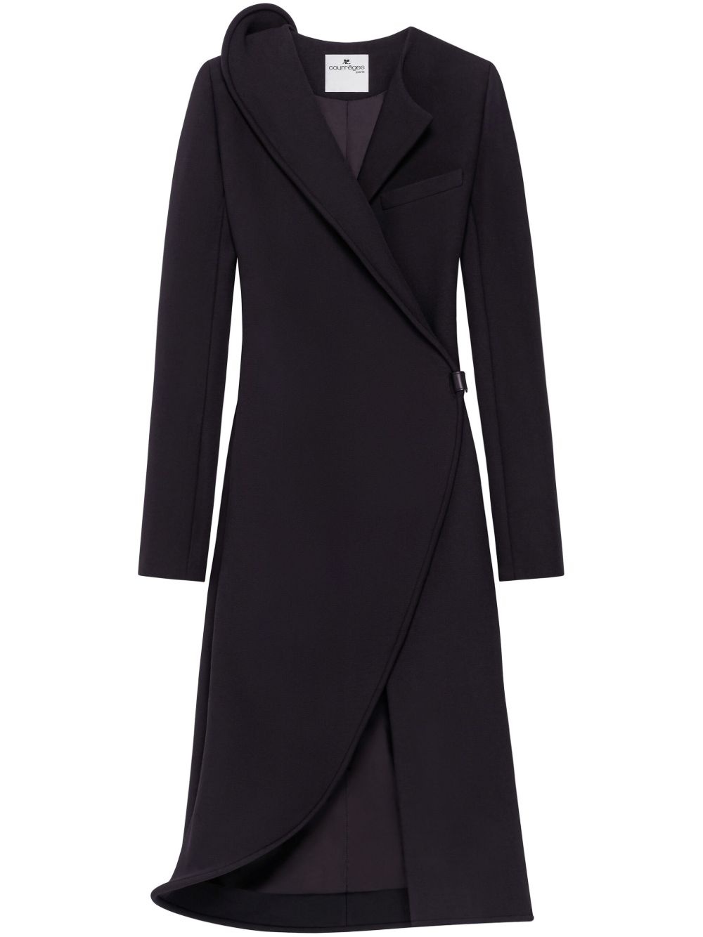 Heritage coat Highlights - Black - Side press-stud fastening - Asymmetric neck - Long sleeves - Curved hem Made in Italy Composition Viscose 52%, Polyamide 26%, Wool 18%, Fabric 4%
