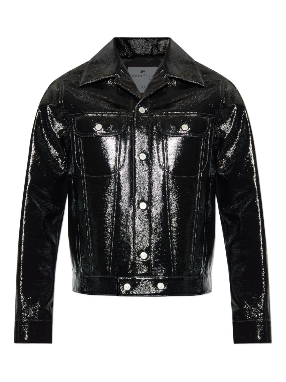 high-shine button-fastening jacket Highlights - Black - High-shine finish - Button fastening - Flap pockets - Classic collar - Straight hem Imported Composition Cotton 88%, Polyurethane 10%, Elastane 2% Washing instructions Read Manufacturer Guidelines