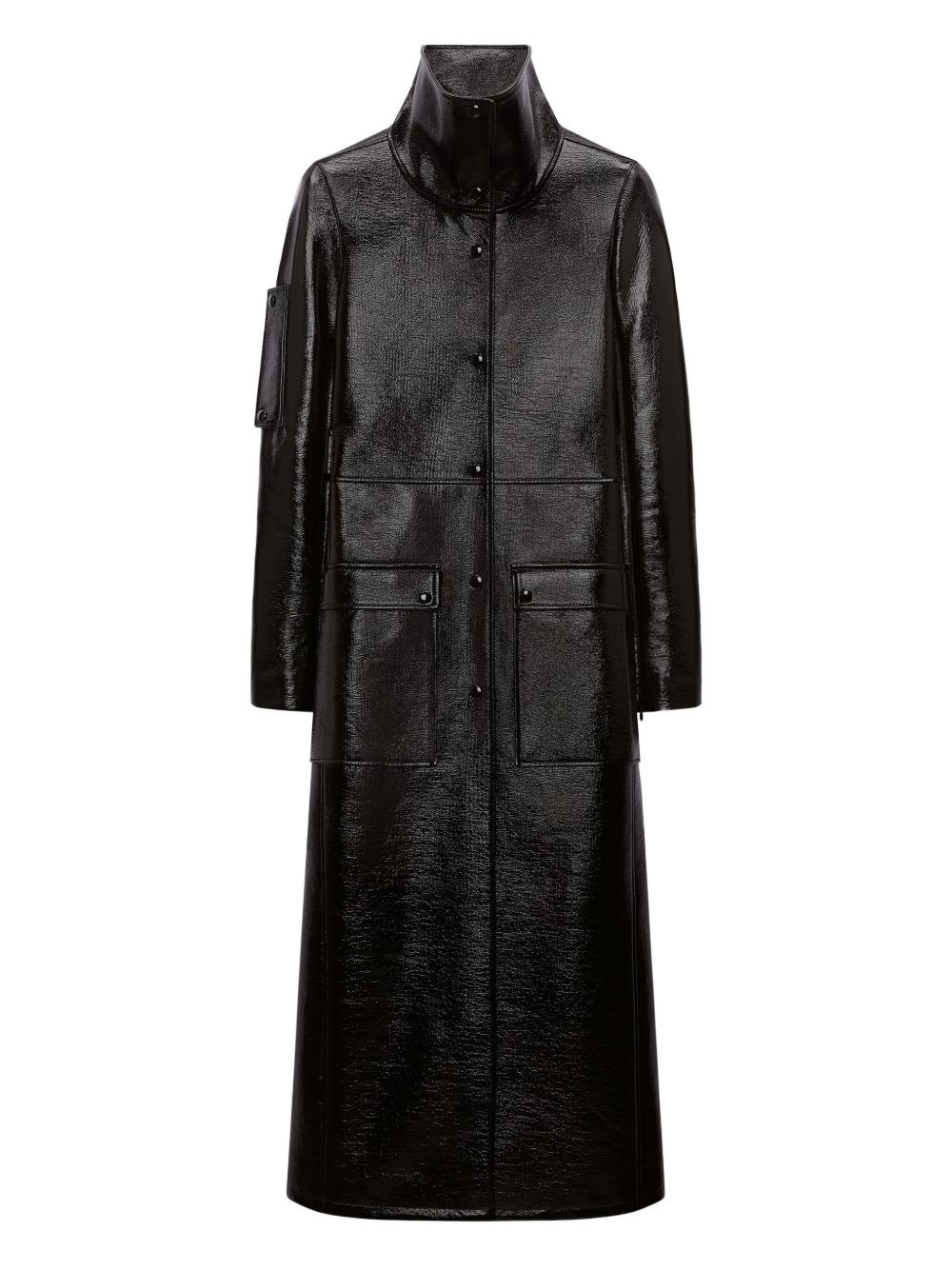 high-shine trench coat