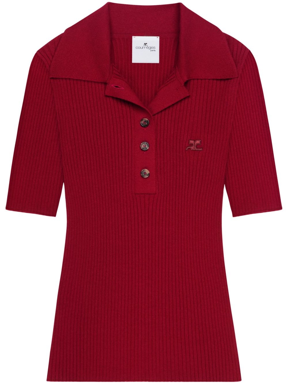 Iconic polo shirt Highlights - Rust red - Ribbed knit - Front button placket - Notched collar - Short sleeves - Applique logo - Straight hem Imported Composition Viscose 70%, Polyester 30% Washing instructions Read Manufacturer Guidelines