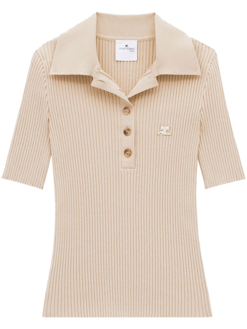 Iconic ribbed-knit polo shirt Highlights - Sand beige - Ribbed knit - Embroidered logo to the front - Notched lapels - Front button fastening - Short sleeves - Straight hem Imported Composition Viscose 70%, Polyester 30% SIZE & FIT FittingInformation Designed for a close fit throughout Made with a midweight knit, this piece offers some stretch