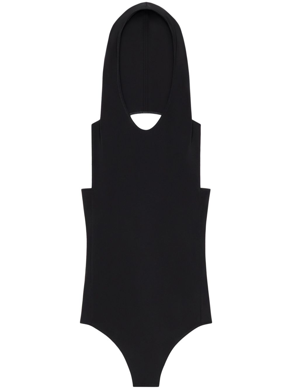 Illusion hooded bodysuit Highlights - Black - Halterneck - Classic hood - Square open back - Sleeveless - Just a reminder that this piece must be tried on over your own garments. Made in France Composition Polyester 89%, Polyurethane 11%