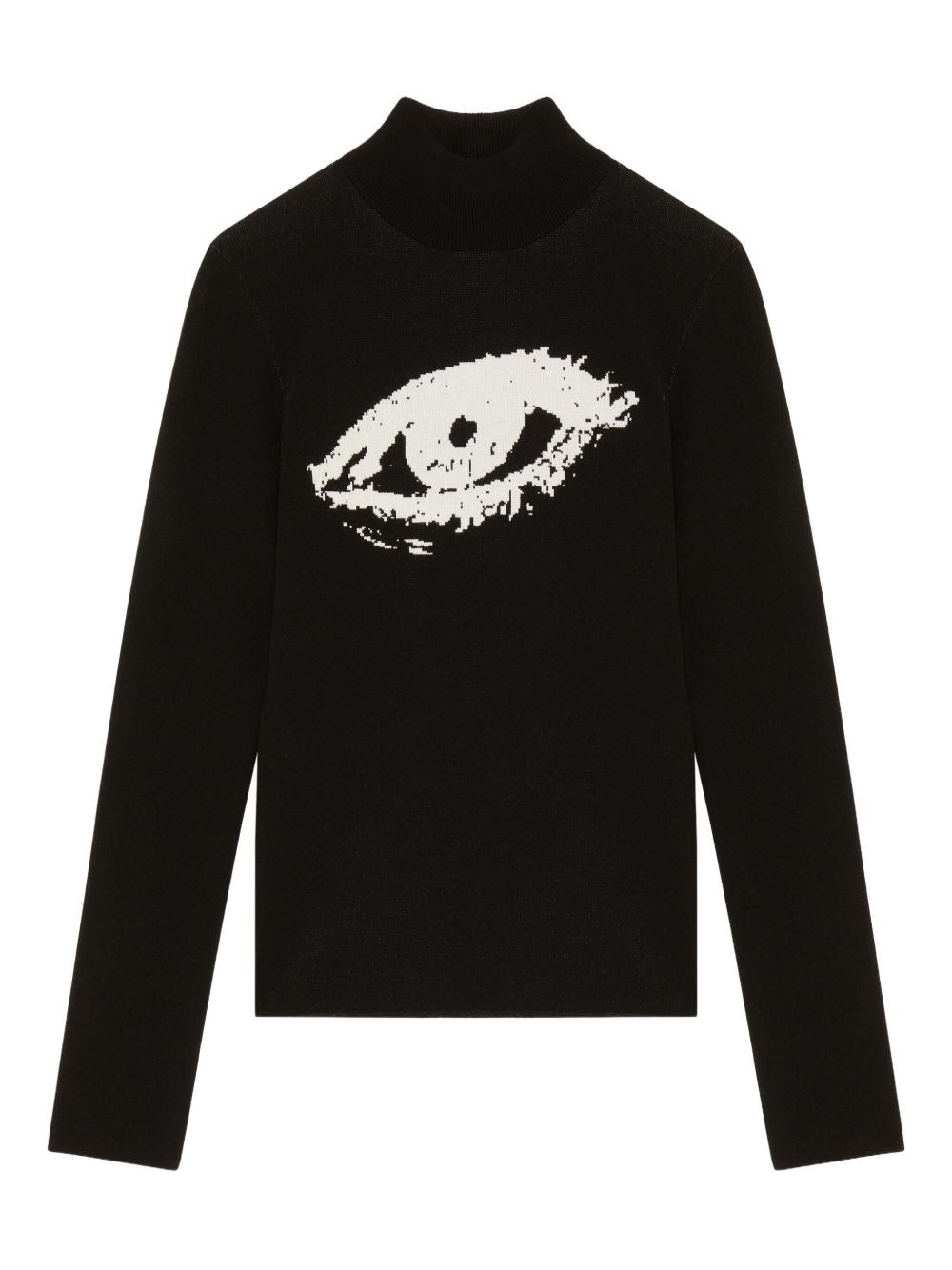 jacquard sweater Highlights - Black - High neck - Long sleeves - Straight hem Imported Composition Viscose 70%, Polyester 30% Washing instructions Read Manufacturer Guidelines