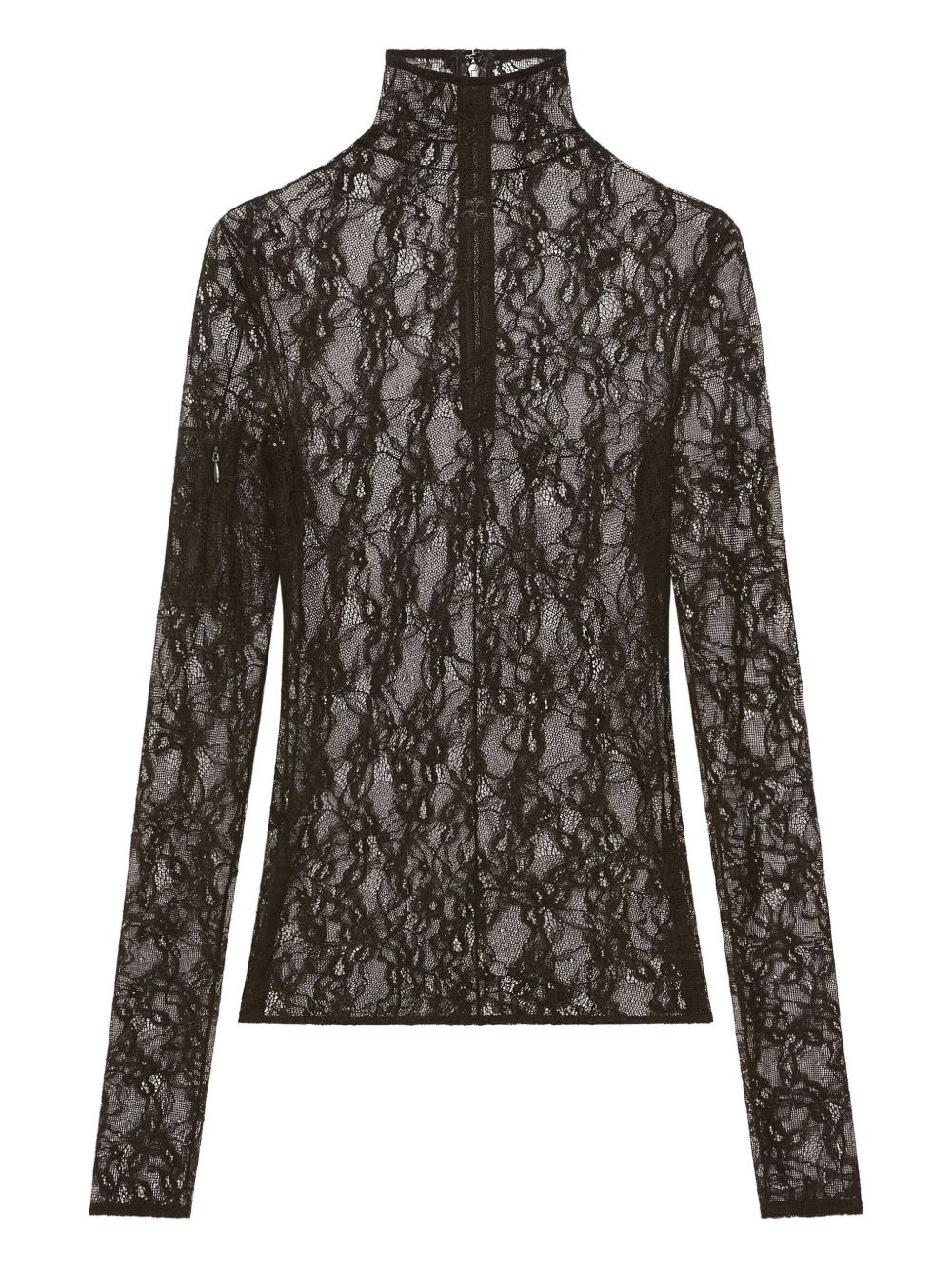 lace-panel high-neck top Highlights - Black - Intricate lace design - Full-length sleeves - Zip fastening at the back - High neck detail Made in Italy Composition Outer: Polyamide 90%, Elastane 10% Washing instructions Read Manufacturer Guidelines