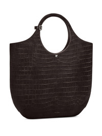 large Holy crocodile-effect tote bag Highlights - Coffee brown - Leather - Patent finish - Embossed crocodile effect - Silver-tone logo plaque - Decorative buckle detail - Logo stamp to the front - Circular top handles - Adjustable detachable shoulder strap - Concealed magnetic fastening - Main compartment Made in Italy Composition Outer: Leather 100%