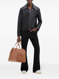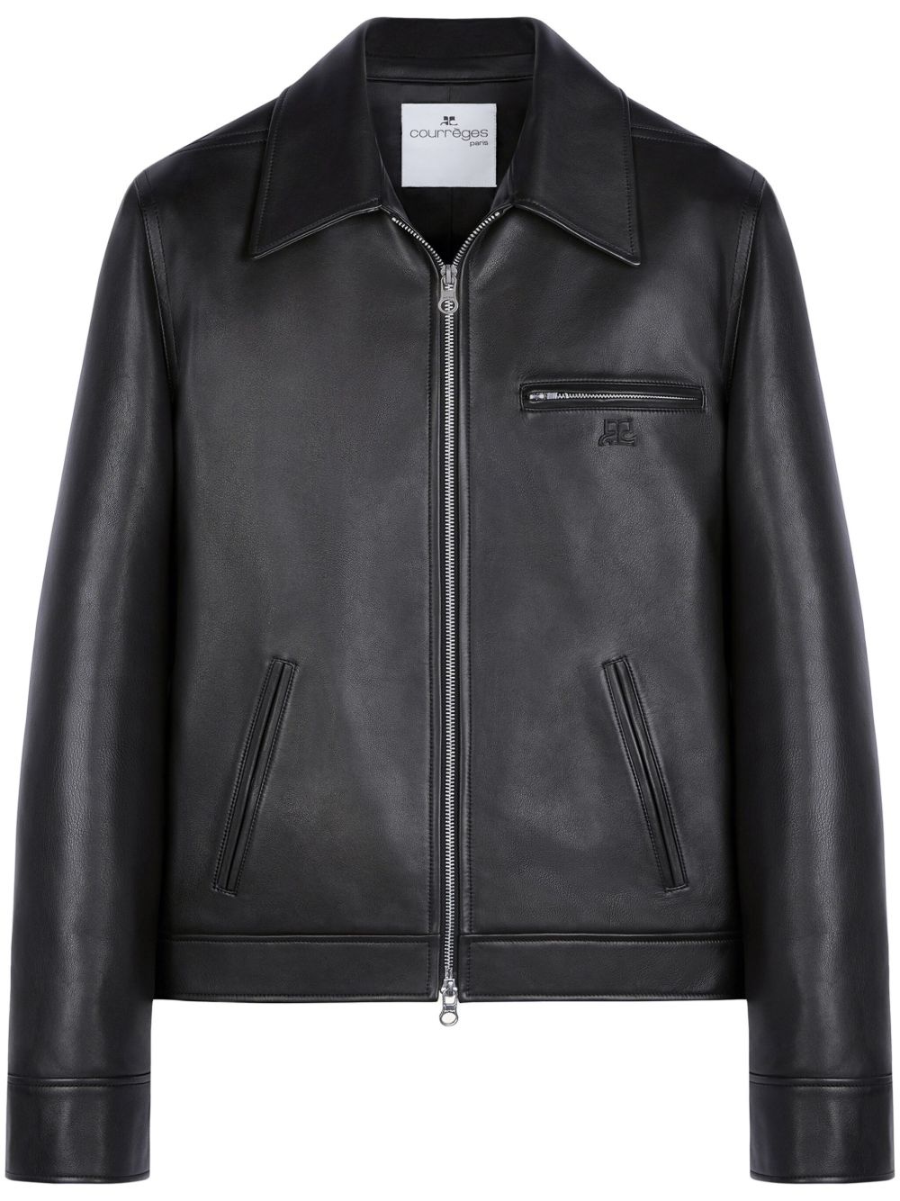 leather shirt jacket Highlights - Black - Calf leather - Classic collar - Logo patch at the chest - Zip-fastening chest pocket - Two front jetted pockets - Long sleeves - Straight hem - Two-way zip fastening Made in France Composition CALFSKIN 100%