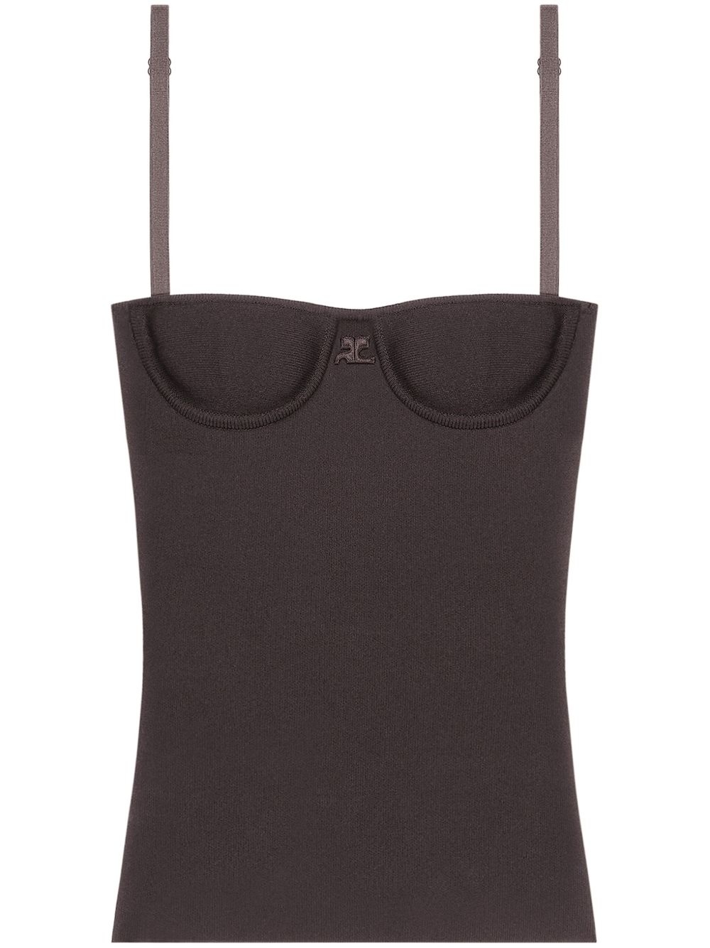 lingerie interlock top Highlights - Brown - Logo patch to the front - Square neck - Adjustable spaghetti straps - Detachable shoulder straps - Sleeveless - Straight hem Made in Italy Composition Viscose 83%, Polyester 17%