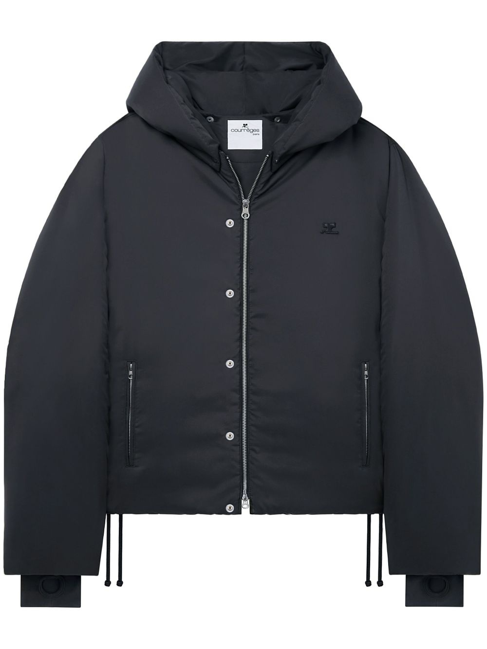 logo-applique hooded puffer jacket Highlights - Jet black - Padded design - Applique logo - Detachable hood - Front zip fastening - Long sleeves - Fitted cuffs - Thumb slots - Front zip fastening pockets - Rear zip-fastening pocket - Drawstring hem - When buying this unisex item, keep in mind that it is graded in standard men's sizing. Imported Composition Polyester 100%
