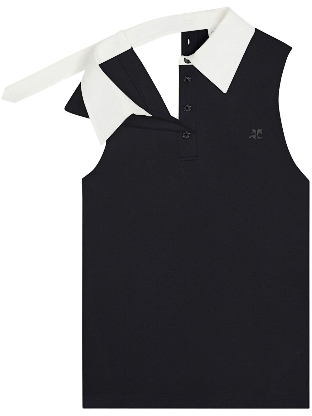 logo-applique polo top Highlights - Black/white - Cotton blend - Embroidered logo at the chest - Polo collar - Front button placket - Rear button fastening - Sleeveless - Straight hem Imported Composition Cotton 96%, Polyamide 4%