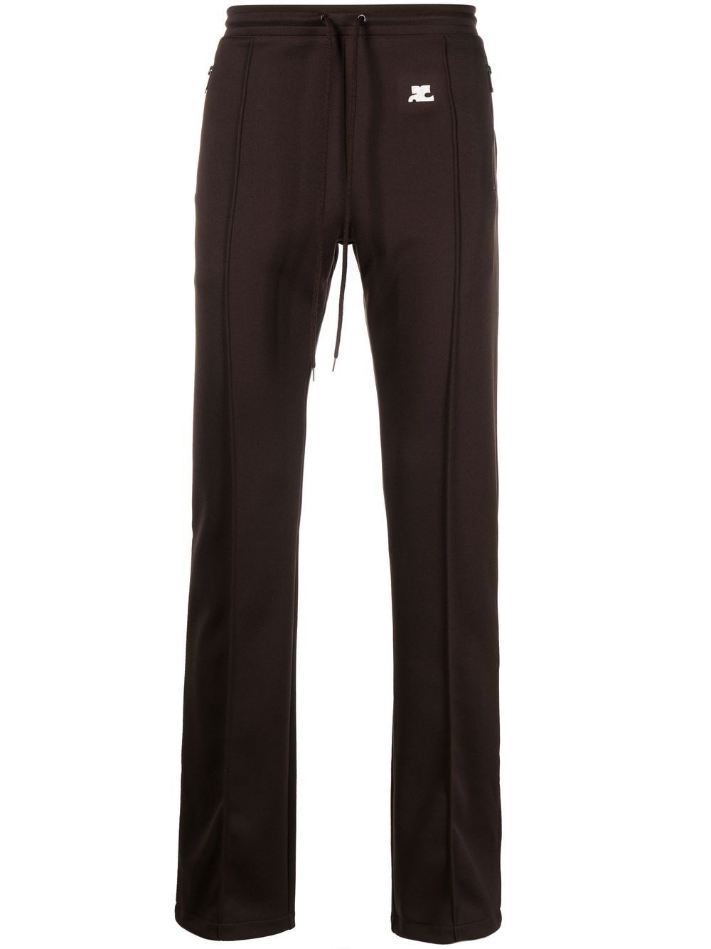 logo-applique trousers Highlights - Chocolate brown - Logo patch to the front - Elasticated drawstring waistband - Two side zip-fastening pockets - Rear zip-fastening pocket Imported Composition Polyester 100% SIZE & FIT Model measurements Height 6 ft 2 in(1.88 m) Bust/Chest 36.61 in(93 cm) Hips 35.82 in(91 cm) Waist 27.95 in(71 cm) FittingInformation This piece fits true to size. We recommend you get your regular size Designed for a slim fit at the waist and loose over the leg Made with a mid-weight fabric