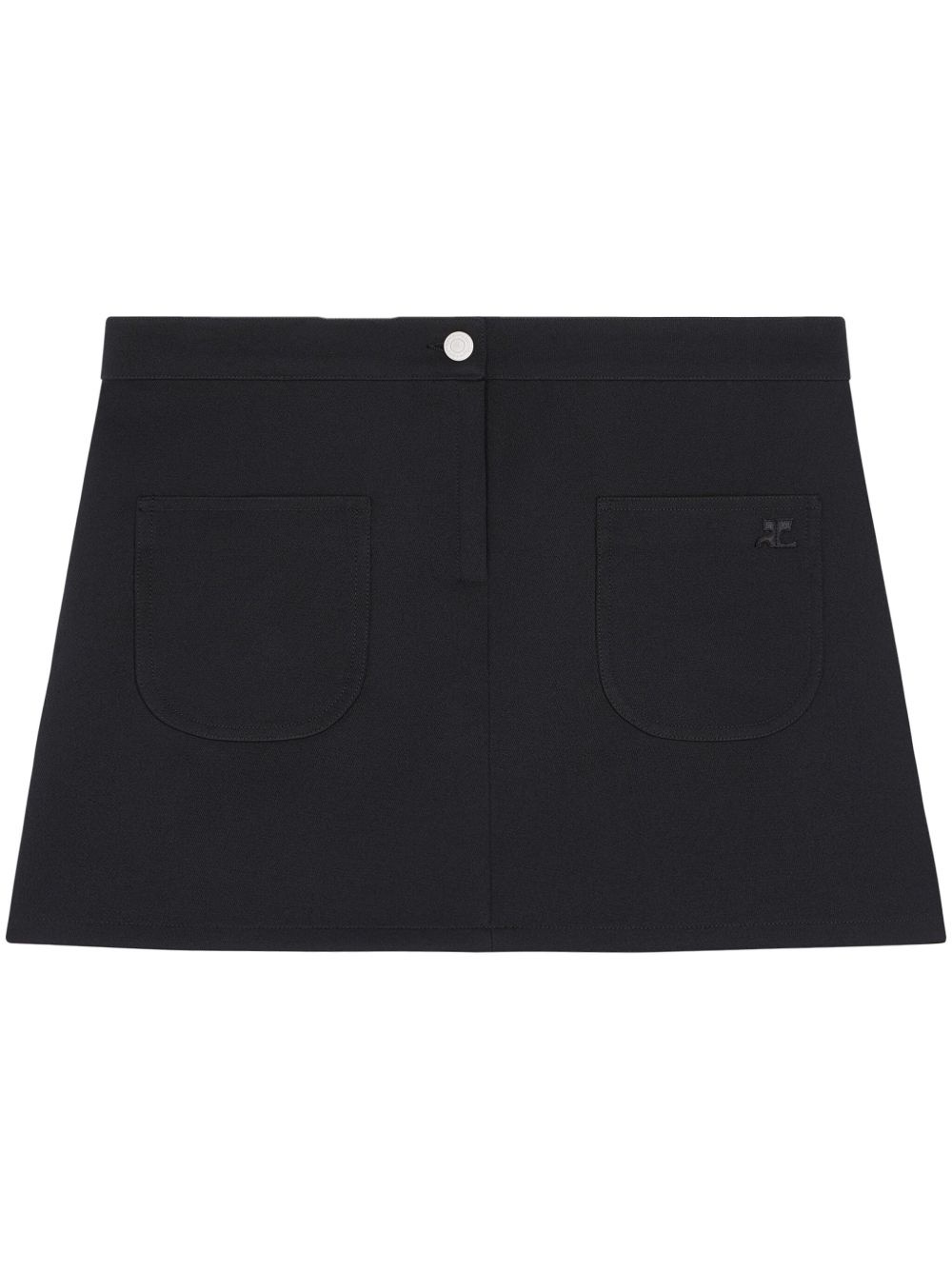logo-applique twill mini skirt Highlights - Black - Twill weave - Applique logo - Mid-rise - Concealed fly and button fastening - Two front patch pockets - A-line - Thigh-length - Straight hem Imported Composition Polyester 83%, Acetate 17%