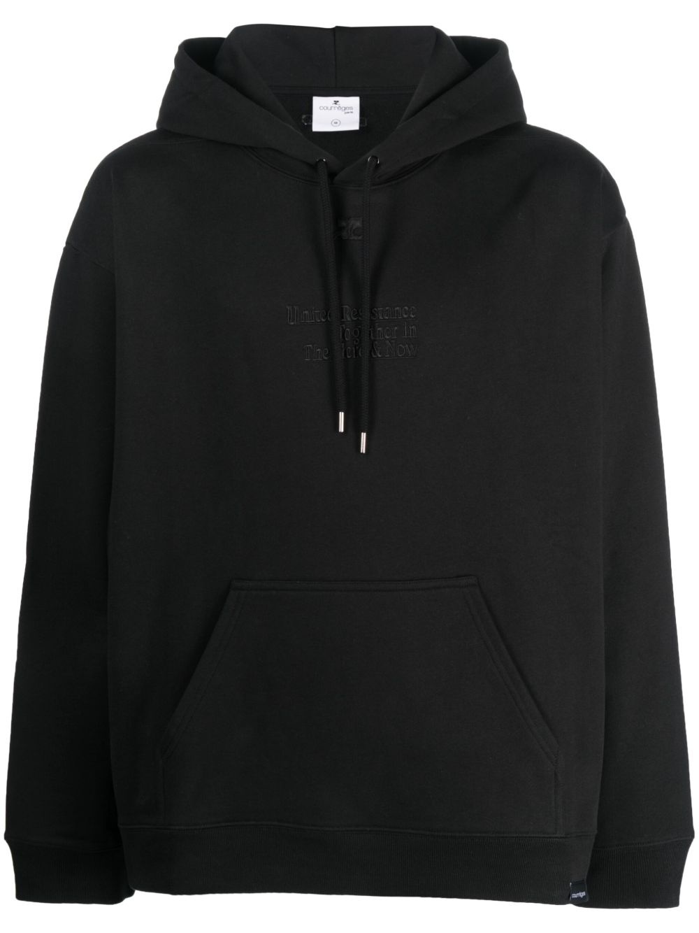 logo-embroidered hoodie Highlights - Black - Cotton - Jersey texture - Embroidered logo to the front - Logo patch to the side - Drawstring hood - Long sleeves - Ribbed cuffs and hem - Straight hem - Front pouch pocket Imported Composition Cotton 100% SIZE & FIT Model measurements Height 6 ft 1 in(1.85 m) Bust/Chest 38.58 in(98 cm) Hips 37 in(94 cm) Waist 30.31 in(77 cm) FittingInformation Designed to be unstructured, offering a loose fit throughout Made from a midweight non-stretch fabric, this piece offers minimal elasticity when worn This piece fits true to size – take your usual size