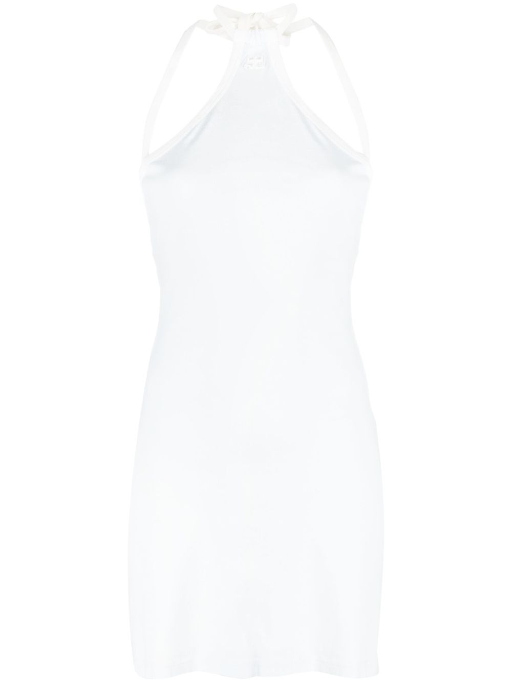 logo-embroidered jersey minidress Parisian fashion house COURREGES showcases its simplicity and minimalism aesthetic in this minidress from the SS23 collection. The blue-hued garment features a halterneck and contrasting trim. The logo embroidery on the front adds a subtle branding note. Highlights - Light blue/off-white - Cotton - Contrasting trim - Embroidered logo to the front - Halterneck tie fastening - Spaghetti straps - Straight hem - Thigh-length Imported Composition Cotton 100% SIZE & FIT Model measurements Height 5 ft 9 in(1.75 m) Bust/Chest 31.49 in(80 cm) Hips 34.05 in(86.5 cm) Waist 24.21 in(61.5 cm) FittingInformation Designed for a close fit throughout The adjustable tie waist gives a more adaptable and personalised fit Made from a midweight non-stretch fabric This piece fits true to size – take your usual size