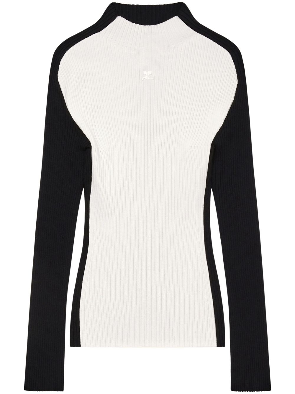 logo-embroidered jumper Highlights - Off-white/black - Ribbed knit - Two-tone design - Embroidered logo to the front - High neck - Long sleeves - Straight hem Imported Composition Viscose 70%, Polyester 30% Washing instructions Read Manufacturer Guidelines