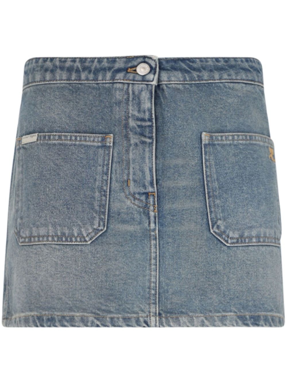 logo-embroidered mini skirt Highlights - Powder blue - Cotton - Embroidered logo to the rear - Front button fastening - Logo patch to the front - Two front patch pockets - Straight hem - Thigh-length Made in Italy Composition Cotton 100%