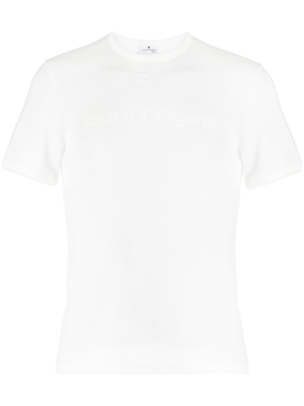 logo-embroidered perforated cotton T-shirt off-white cotton embroidered logo to the front logo print at the chest fully perforated crew neck short sleeves straight hem Imported Composition Body: Polyester 52%, Cotton 48% Outer: Cotton 100% SIZE & FIT Model measurements Height 6 ft 2 in(1.87 m) Bust/Chest 34.25 in(87 cm) Hips 36.22 in(92 cm) Waist 29.52 in(75 cm) Measurement CHEST 38.58 in(98 cm) SLEEVE LENGTH 7.87 in(20 cm) LENGTH 25.19 in(64 cm) Shoulder Width 16.92 in(43 cm) FittingInformation Designed for a slim fit, offering a comfortable fit that sits just away from the body Made with a midweight knit, this piece offers some stretch This piece fits true to size – take your usual size Washing instructions Machine Wash