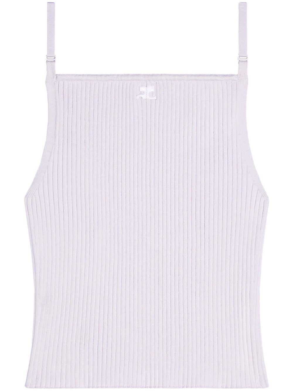 logo-embroidered ribbed tank top Highlights - Ecru - Ribbed knit - Embroidered logo to the front - Square neck - Adjustable spaghetti straps - Straight hem Imported Composition Viscose 70%, Polyester 30%