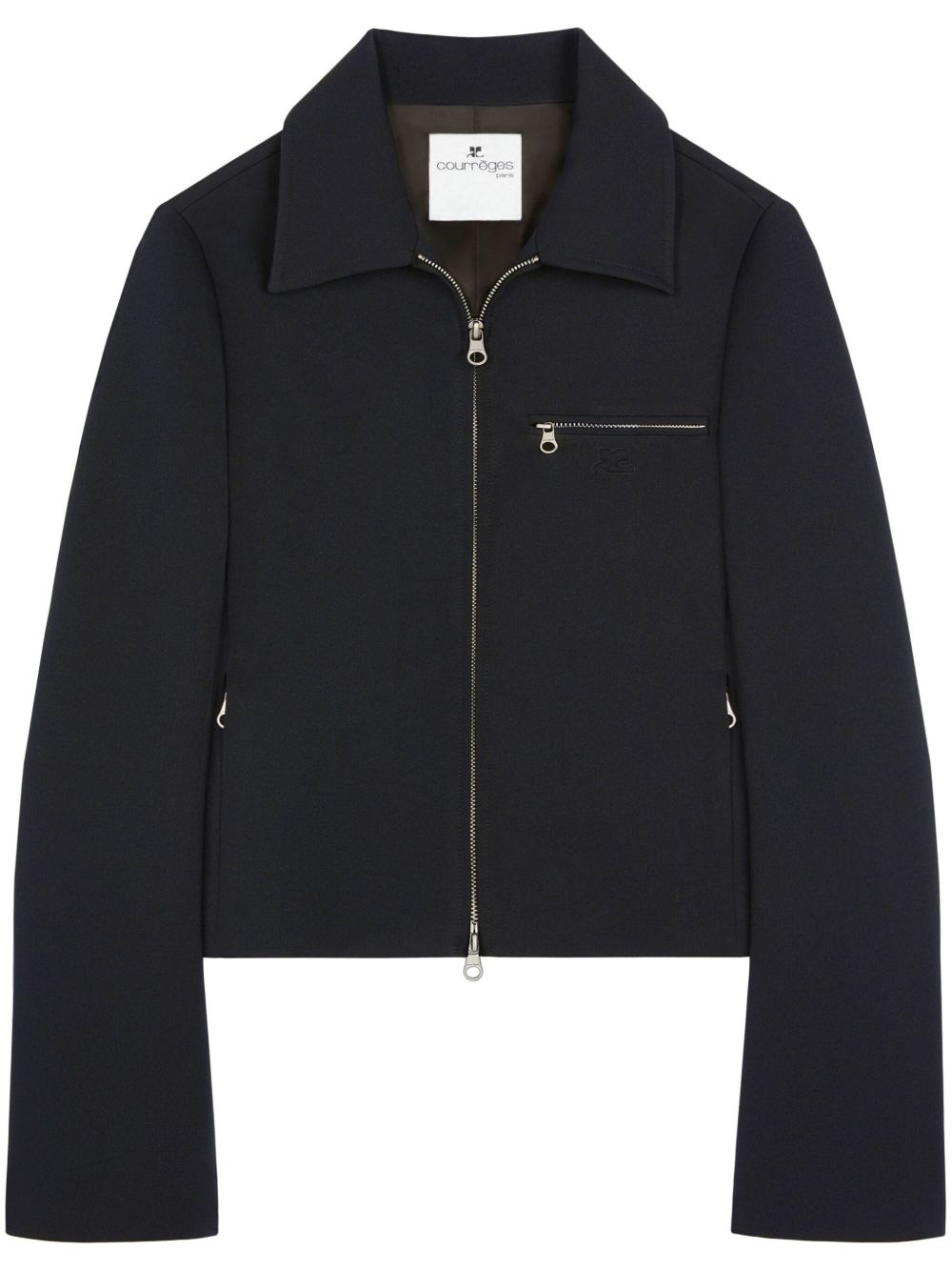 logo-embroidered zip-fastening twill jacket Highlights - Black - Twill weave - Embroidered logo at the chest - Front two-way zip fastening - Zip-fastening chest pocket - Two side zip-fastening pockets - Classic collar - Long flared sleeves Imported Composition Polyester 83%, Acetate 17% Washing instructions Read Manufacturer Guidelines