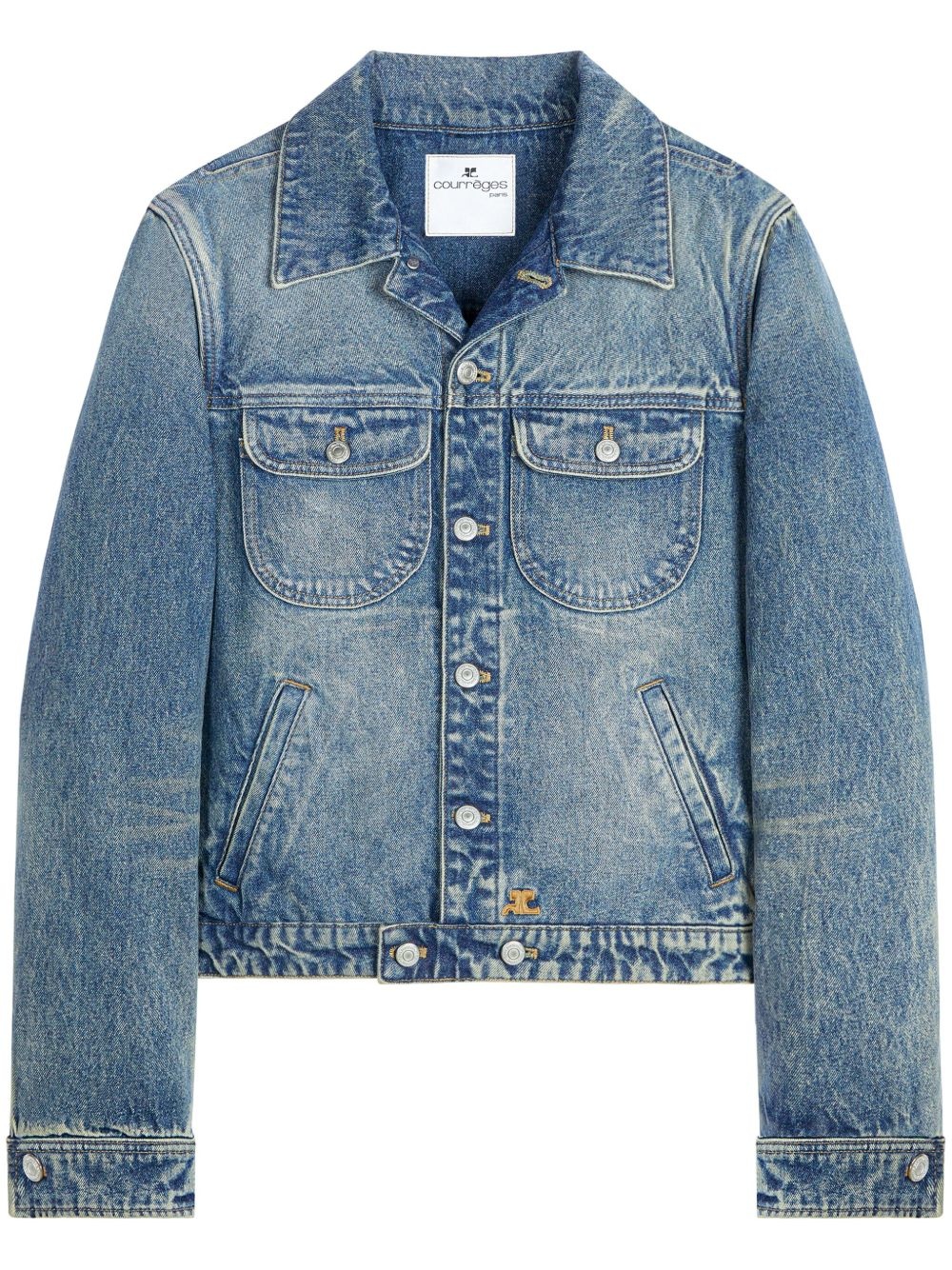 logo-patch denim jacket Highlights - Blue - Cotton - Denim - Stonewashed - Spread collar - Long sleeves - Buttoned cuffs - Two chest flap pockets - Two side welt pockets - Logo patch to the front - Adjustable waist strap - Straight hem - Front button fastening Made in Italy Composition Cotton 100% Washing instructions Read Manufacturer Guidelines