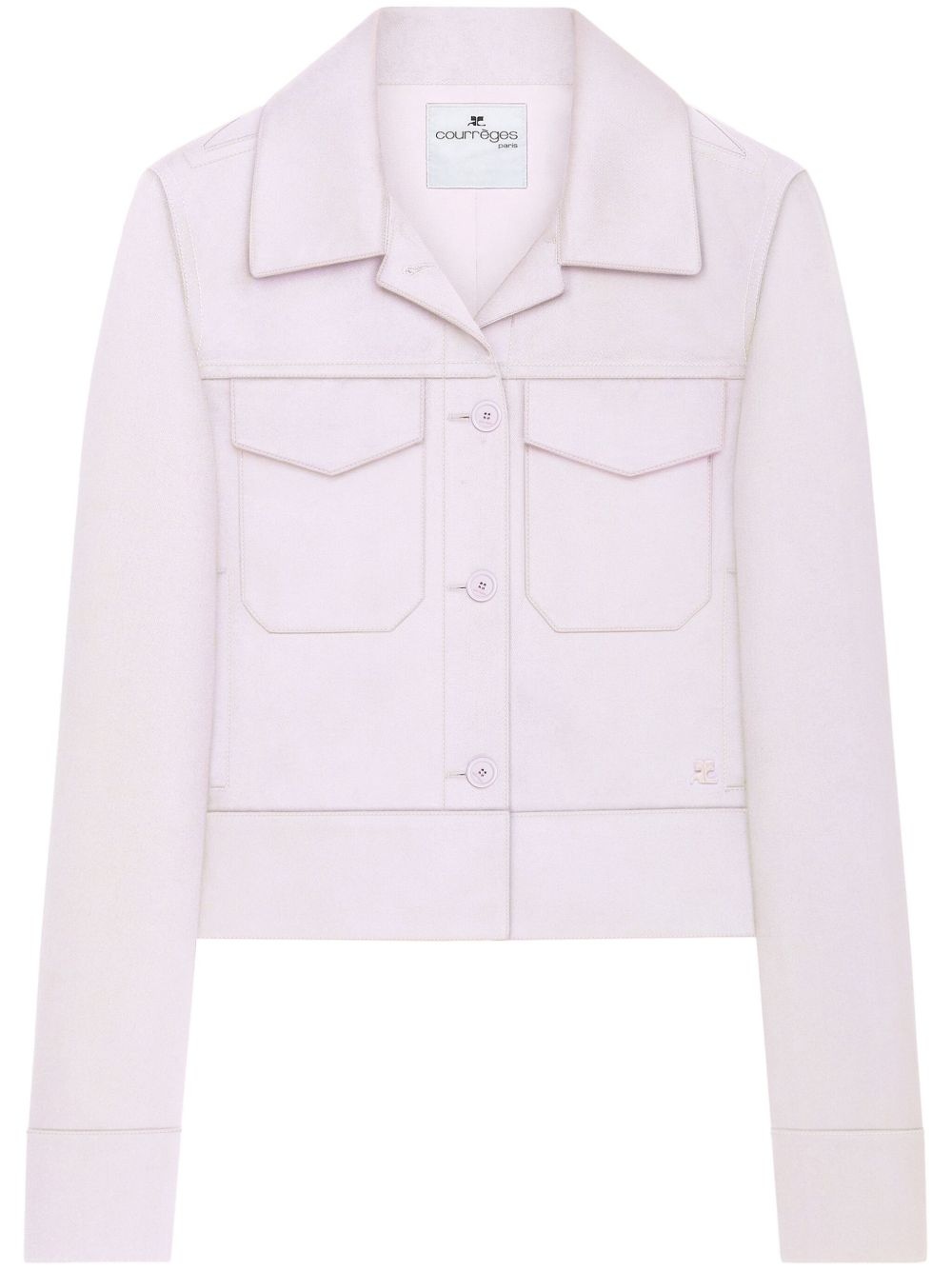 logo-patch jacket Highlights - Light pink - Front button fastening - Two chest flap pockets - Camp collar Imported Composition Polyester 65%, Cotton 35%