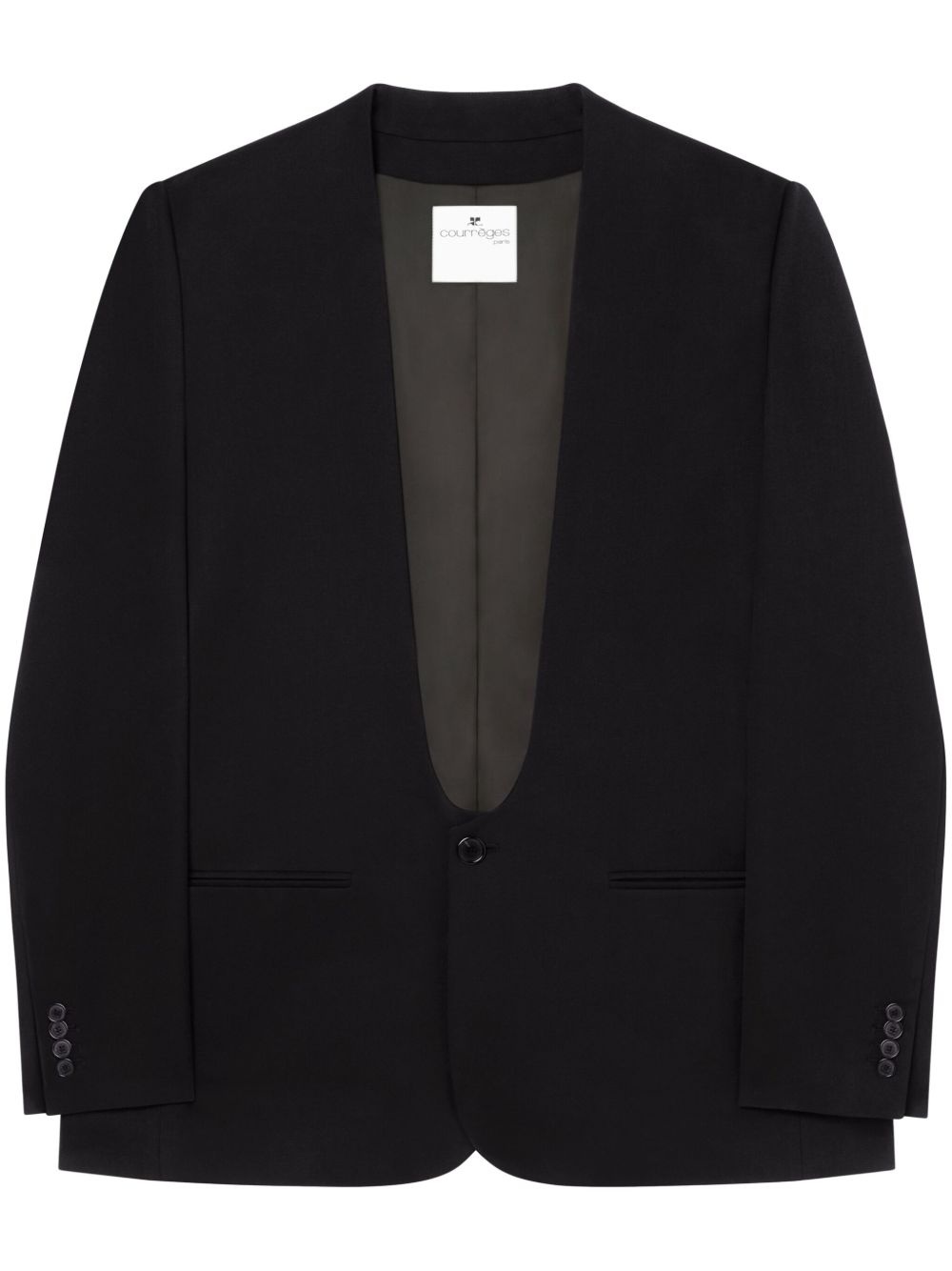 logo-patch wool blazer Highlights - Black - Wool - No lapels - Long sleeves - Zipped sleeves - Two side jetted pockets - Logo patch to the rear - Curved hem - Front button fastening Made in Italy Composition Wool 100% Washing instructions Read Manufacturer Guidelines