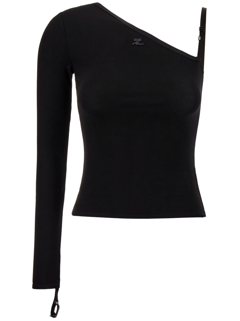logo-plaque stretch top Highlights - Black - Stretch-design - Tonal logo plaque - One-shoulder - Adjustable shoulder strap - Single long sleeve - Straight hem Made in Italy Composition Viscose 96%, Elastane 4%