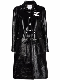 logo-print lacquered-effect trench coat Drawing inspiration from Courreges' iconic 1972 vinyl jacket, this trench coat contains house codes such as the white AC logo patch emblazoned at the chest and a lacquered finish. Imported Composition Outer: Cotton 88%, Polyurethane 10%, Spandex/Elastane 2% Lining: Cupro 100% SIZE & FIT Model measurements Height 5 ft 9 in(1.76 m) Bust/Chest 31.1 in(79 cm) Hips 35.43 in(90 cm) Waist 22.83 in(58 cm) FittingInformation This piece fits true to size. We recommend you get your regular size Designed for a close fit at the bust, waist and hips Made with a mid-weight fabric Washing instructions Dry Clean Only