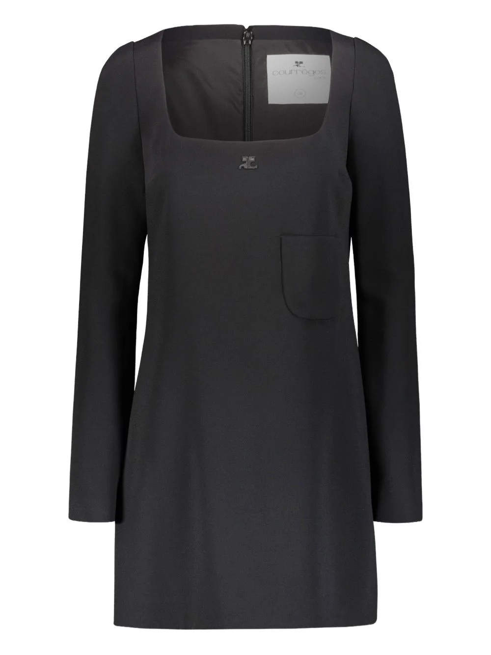 long-sleeve crepe dress Highlights - Black - Crepe texture - Square neck - Long sleeves - Mini length Imported Composition Viscose 98%, Elastane 2% Washing instructions Read Manufacturer Guidelines