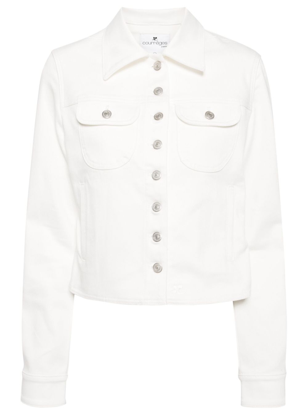 long-sleeve denim jacket Highlights - White - Stretch-cotton - Denim - Silver-tone hardware - Spread collar - Front button fastening - Long sleeves - Buttoned cuffs - Two chest flap pockets - Two side welt pockets - Straight hem - Cotton lining Made in Italy Composition Outer: Cotton 99%, Elastane 1% Lining: Cotton 100% Washing instructions Machine Wash