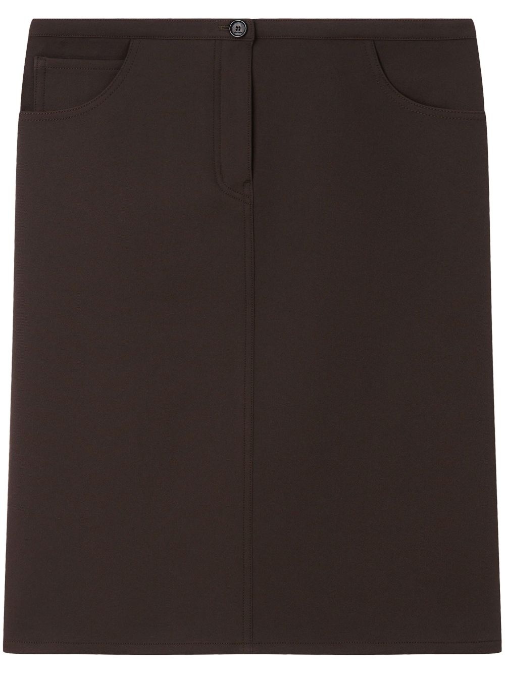 low-waist midi skirt Highlights - Chocolate brown - Twill weave - Low-rise - Classic five pockets - Rear slit - Straight hem - Mid-length - Concealed fly and button fastening Imported Composition Polyester 83%, Acetate 17%