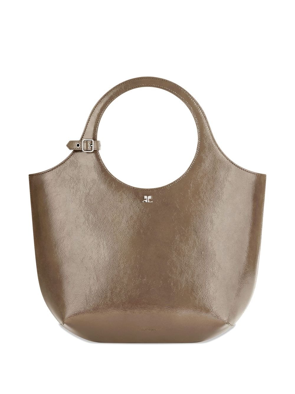 medium Holy tote bag Highlights - Truffle brown - Patent leather finish - Circular top handle - Buckle fastening strap - Embossed logo - Detachable shoulder strap Made in Italy Composition Outer: Bovine Leather (top grain) 100% SIZE & FIT Measurement HEIGHT 14.96 in(38 cm) STRAP 40.94 in(104 cm) WIDTH 17.71 in(45 cm)