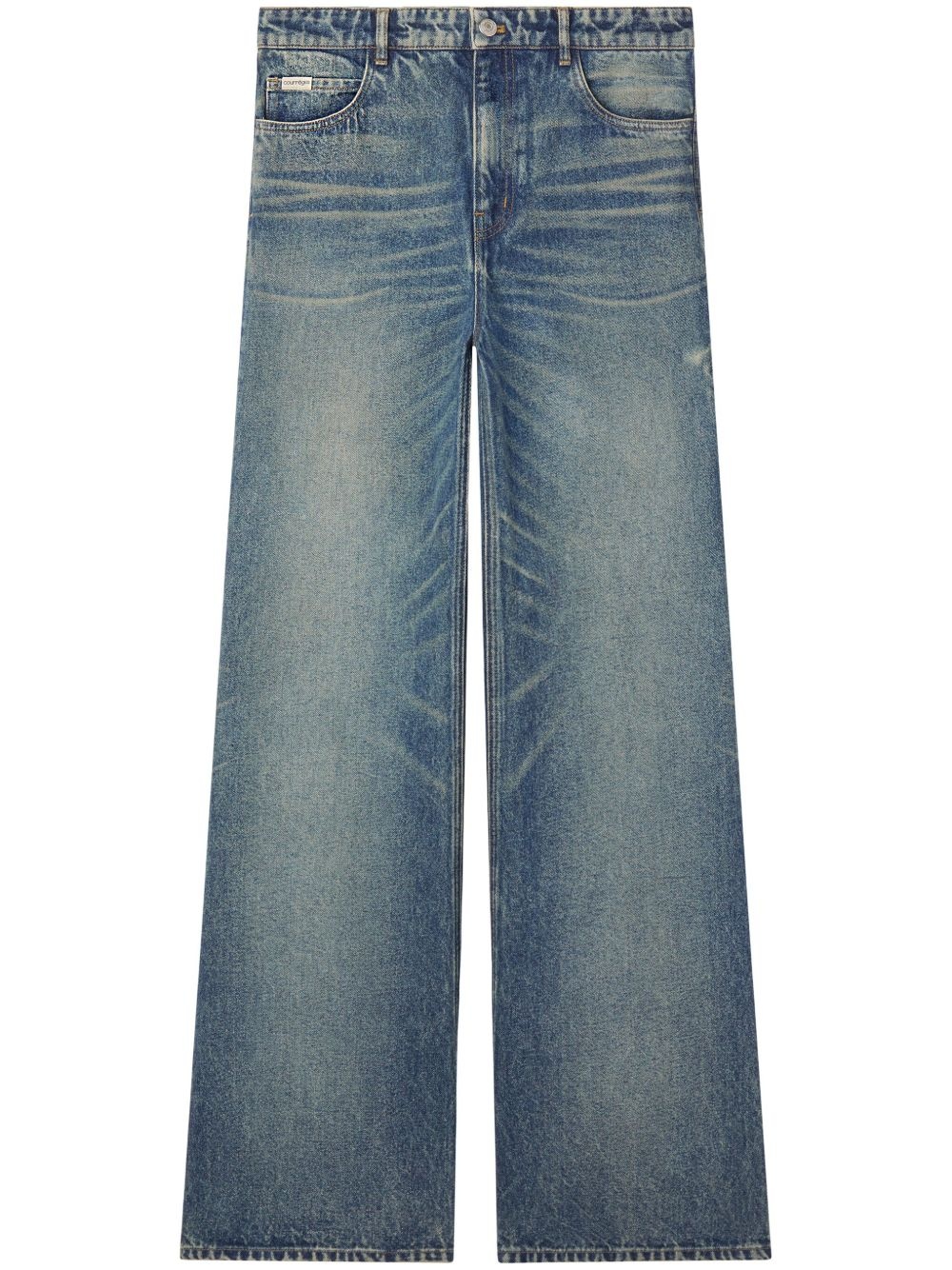 mid-rise wide-leg jeans Highlights - Blue - Cotton - Denim - Mid-wash - Whiskering effect - Embroidered logo to the rear - Belt loops - Mid-rise - Wide leg - Front button and zip fastening - Classic five pockets Made in Italy Composition Cotton 100%