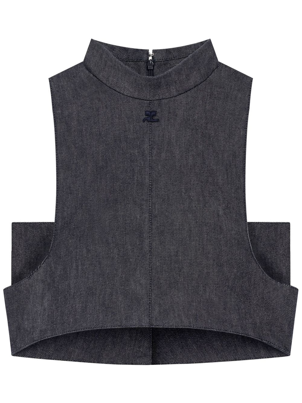 mock-neck denim top Highlights - Dark grey - Concealed rear hook and zip fastening - Cut-out detailing - Layered details - Applique logo Made in Italy Composition Cotton 98%, Elastane 2%