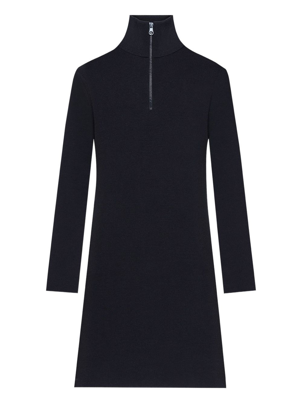 mock-neck zip-front mini dress Highlights - Navy blue - Mock neck - Zip front - Long sleeves - Straight hem Imported Composition Merino 100% Washing instructions Read Manufacturer Guidelines
