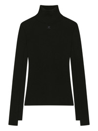 mockneck interlock sweater Highlights - Black - Mock neck - Long sleeves - Close-fitting - Straight hem - Chest logo detail Imported Composition Viscose 70%, Polyester 30% Washing instructions Read Manufacturer Guidelines