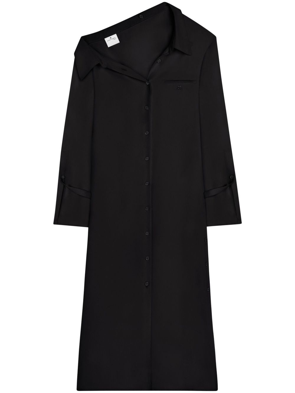 modular crepe shirt dress Highlights - Black - Crepe texture - Modular collar - Long flared sleeves - Chest welt pocket - Embroidered logo at the chest - Front button fastening - Side buttoned slit - Mid-length - Straight hem Imported Composition Polyester 100%