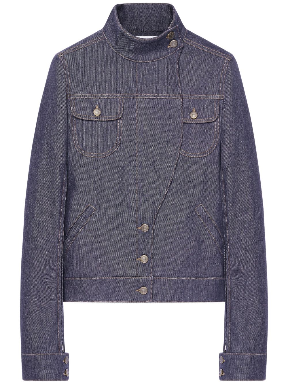Motorcycle denim jacket Highlights - Heather grey - Stretch-cotton - Denim - Contrast stitching - Logo patch to the rear - Two chest flap pockets - Stand-up collar - Long sleeves - Buttoned cuffs - Front button fastening Made in Italy Composition Cotton 98%, Elastane 2%
