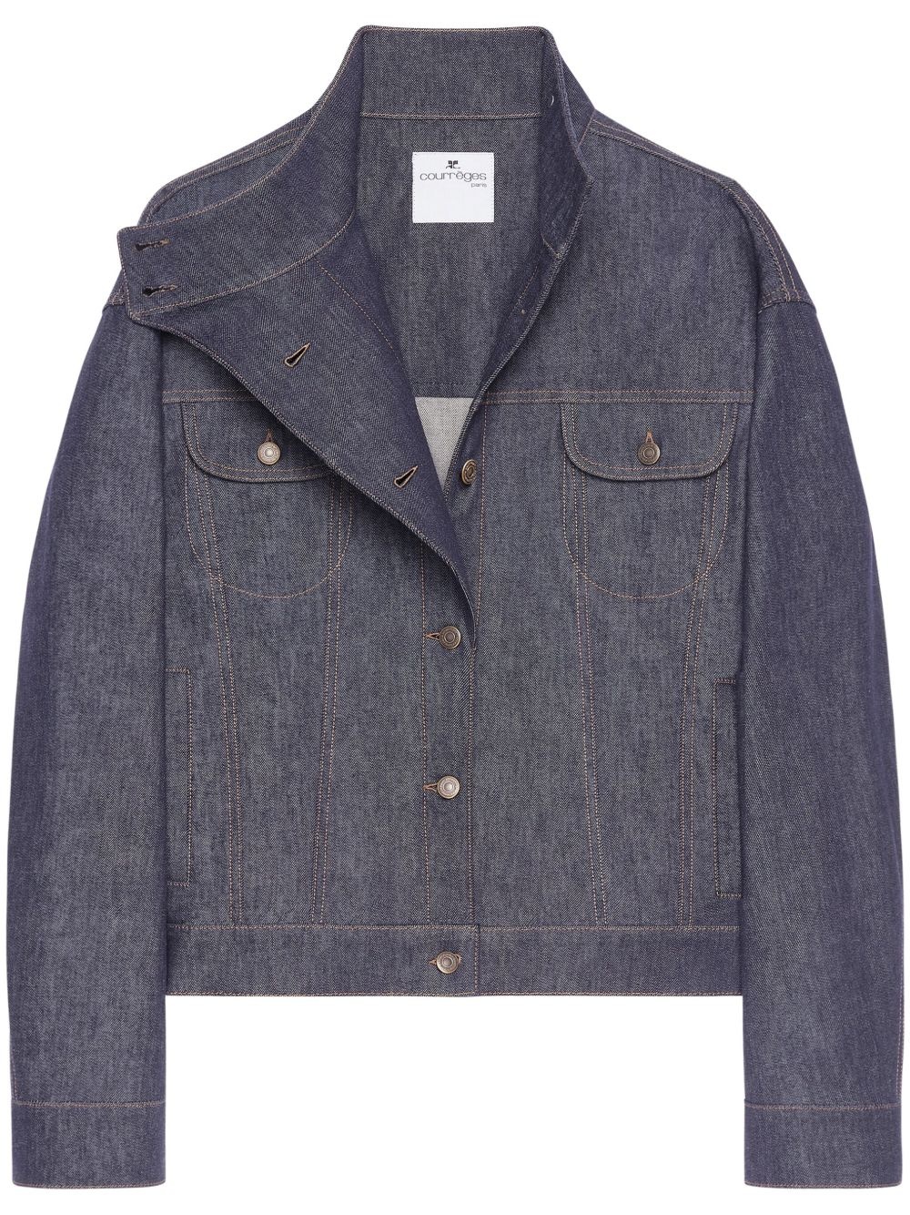 Motorcycle denim jacket Highlights - Heather grey - Stretch-cotton - Denim - Contrast stitching - Logo patch to the rear - Two chest flap pockets - Stand-up collar - Long sleeves - Buttoned cuffs - Front button fastening Made in Italy Composition Cotton 98%, Elastane 2%